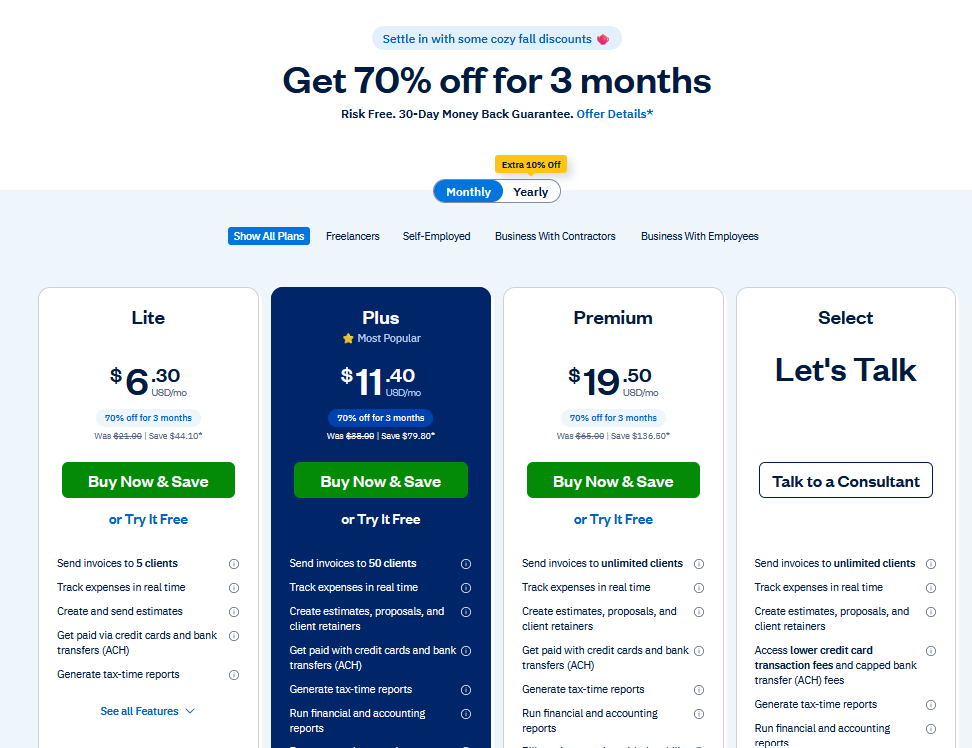 FreshBooks offers a range of pricing plans to cater to businesses of various sizes and budgets. The software provides a free trial period, allowing users to test the platform’s features before committing to a subscription. The paid plans are competitively priced and offer scalable options, making FreshBooks accessible to both small startups and larger enterprises.